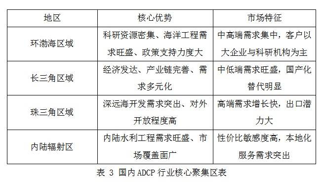 国内ADCP行业核心聚集区分布在环渤海、长三角、珠三角区域以及内陆的辐射区。